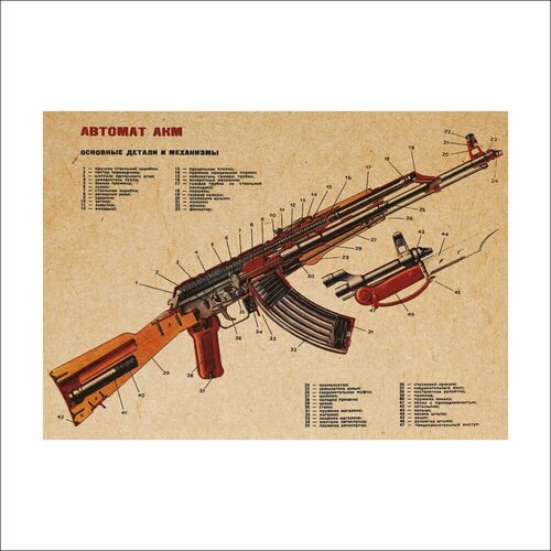 Постер из крафт-бумаги АКМ АК-47 / Плакат интерьерный 36см х 51см