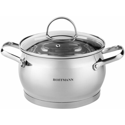 Кастрюля нержавеющая сталь, 2.9 л, с крышкой, крышка стекло, Hoffmann, НМ 5862, индукция