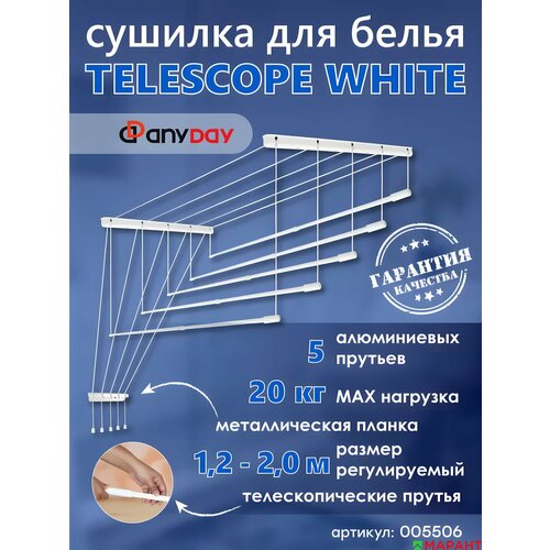 Сушилка для белья потолочная AnyDay Telescop 1,2-2,0 метра, 5 перекладин