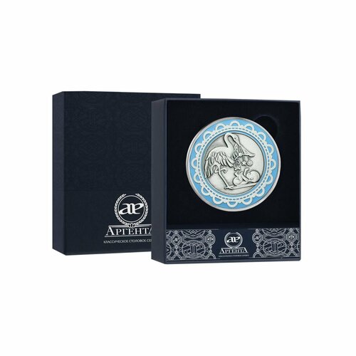 Медаль "С рождением" с чернью с голубой эмалью Серебро 925 пробы