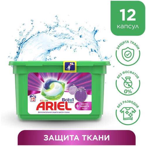 Ariel капсулы PODs Всё в 1 Color, контейнер, 12 шт., 0.39 кг, 0.35 л