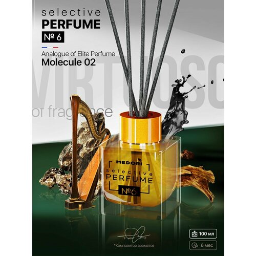 Диффузор для дома Medori 100 мл Селектив №6 / Аромадиффузор с фибровыми палочками и флаконом для офиса, квартиры, дома / Освежитель воздуха для туалета, ванной комнаты, спальни