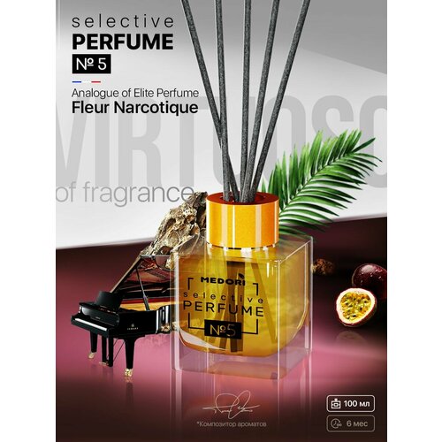 Диффузор для дома Medori 100 мл Селектив №5 / Аромадиффузор с фибровыми палочками и флаконом для офиса, квартиры, дома / Освежитель воздуха для туалета, ванной комнаты, спальни