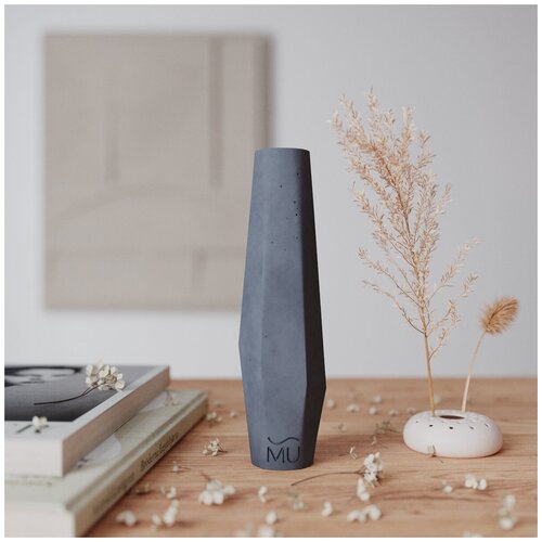 Декоративная ваза для сухоцветов Ben Matte, 25 см, бетон, графитовая матовая