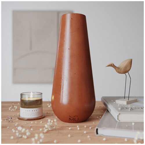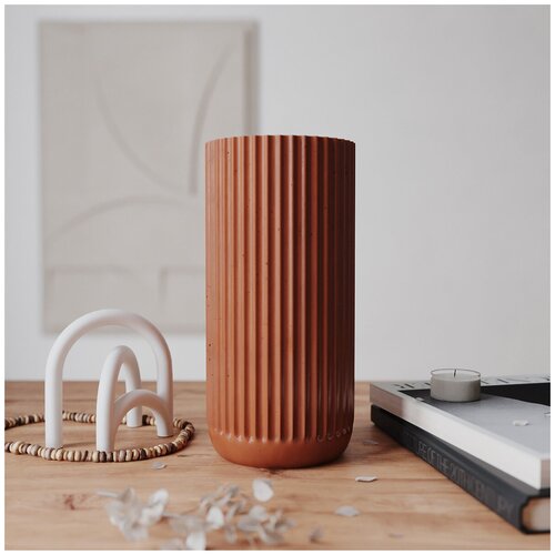 Декоративная ваза для сухоцветов Chloe L, 25x12 см, бетон, терракотовая глянцевая