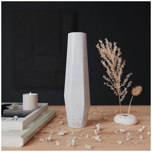 Декоративная ваза для сухоцветов Megan L, 35 см, бетон, белая матовая