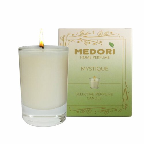 Свеча ароматическая для дома Medori MYSTIQUE парфюмированная, декоративная с запахом в стеклянном стакане, из соевого воска для украшения интерьера