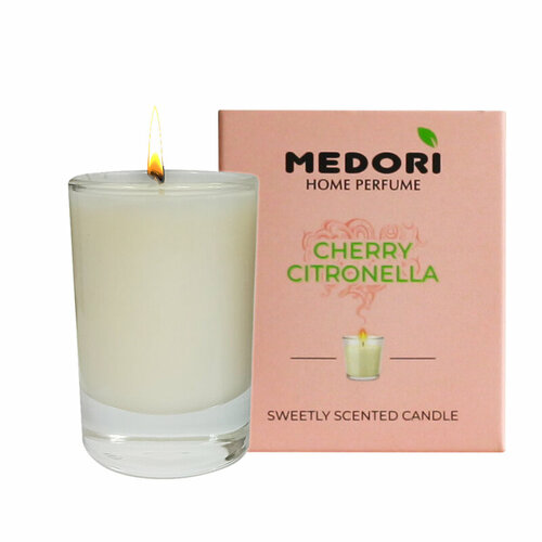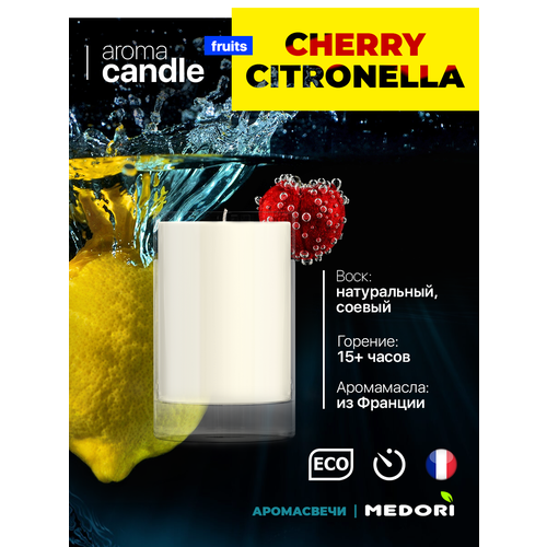 Свеча ароматическая для дома Medori декоративная свеча в стеклянном стакане Cherry & Citronnela
