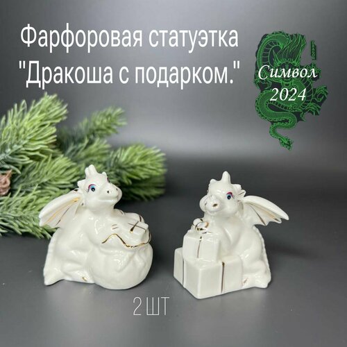 Фарфоровая статуэтка "Дракоша с подарком."/Символ 2024/Новогодняя фигурка