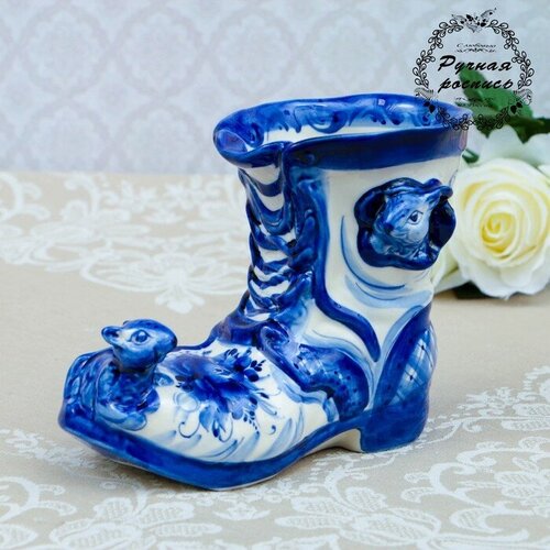 Ваза-карандашница "Сапожок с мышками", гжель, фарфор, 16х19 см./В упаковке: 1