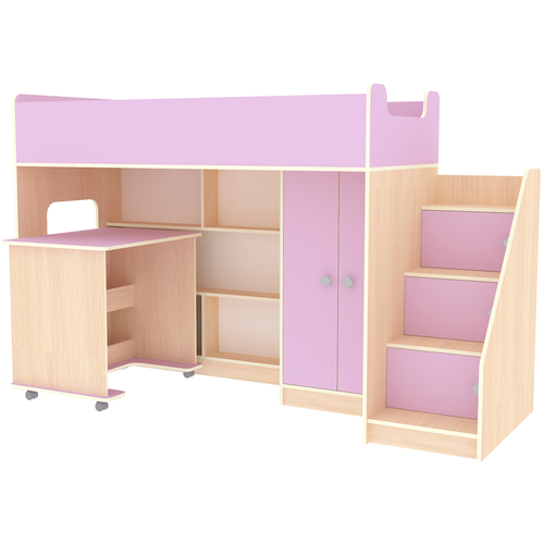 Кровать чердак Л-42.3.6 Белый Розовый