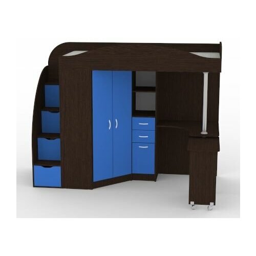 Кровать-чердак "Теремок-1 Гранд" Венге Светло Синий/Голубой