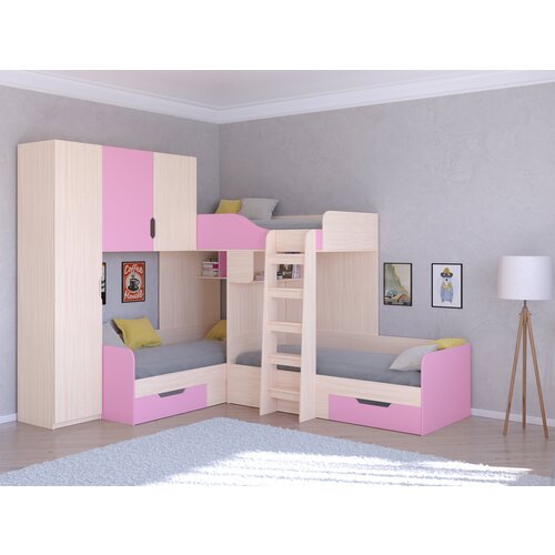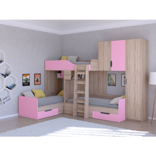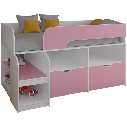Кровать-чердак РВ Мебель Астра 9/6 Белый / Розовый