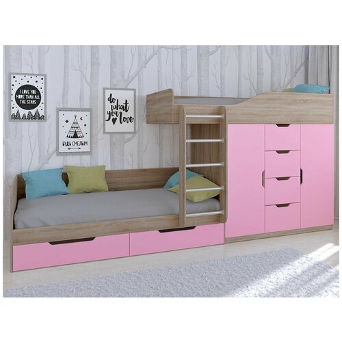 Кровать-чердак РВ Мебель Астра 9/5 Белый / Розовый