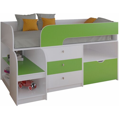 Кровать-чердак РВ Мебель Астра 9/5 Белый / Салатовый