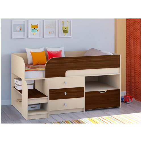 Кровать-чердак Астра 9/5 Дуб молочный/Орех