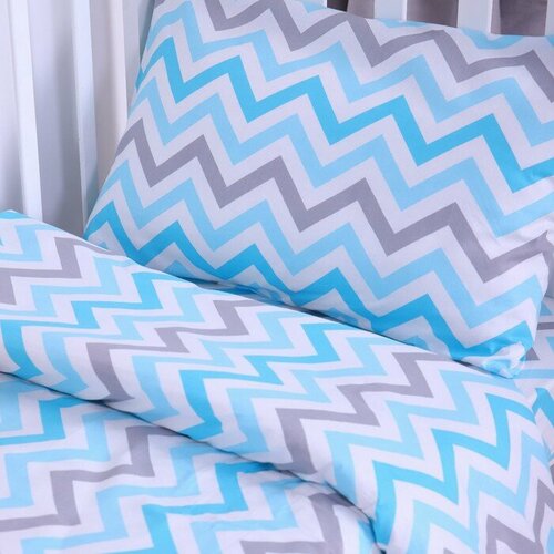 Атра Постельное бельё BABY Зигзаг голубой 112х147 см,60х120 см на резинке, 40х60 см, бязь 125 гр/м,100% хлопок
