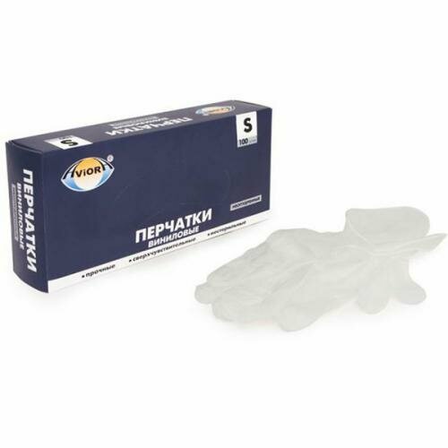 Aviora Перчатки виниловые, неопудренные, одноразовые, размер S, 100 шт. в упаковке