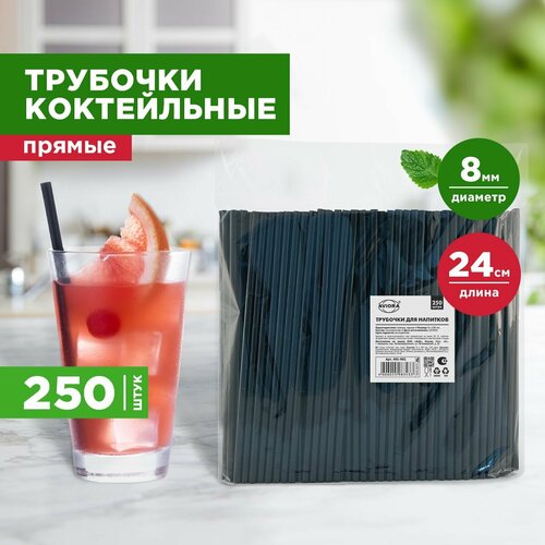Aviora Трубочки прямые одноразовые пластиковые, 24 см, 250 шт., черные