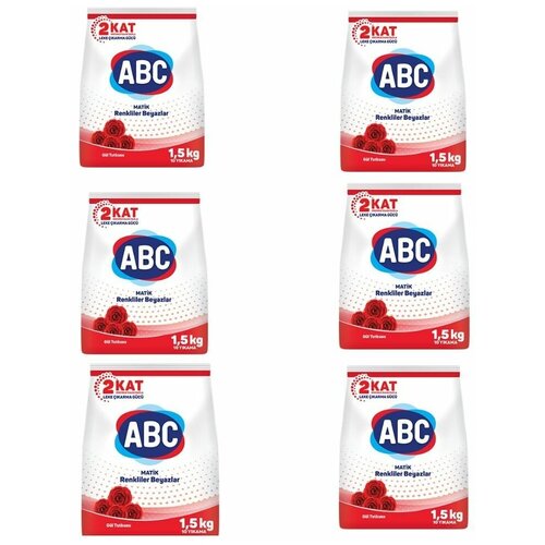 Стиральный порошок ABC "Роза" для цветного белья 9 кг (Набор:6 шт*1,5 кг.) / Турция
