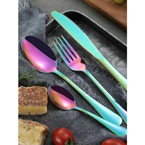 Набор столовых приборов в подарочной коробке, 24 предмета, цвет радужный хамелеон