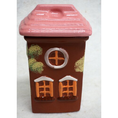 Банка глиняная керамическая для сыпучих продуктов домик 0,75л ручная роспись