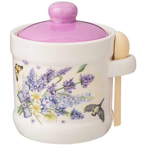 Банка для сыпучих продуктов Agness / Агнесс Прованс лаванда с крышкой и ложкой керамика разноцветный 300мл / посуда для кухни / емкость для хранени
