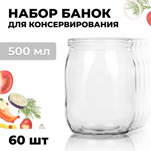 Банка стеклянная для консервирования набор 60шт СКО 1-82 500 мл , без крышек , для хранения, варенья, компота, закаточная, многоразовая