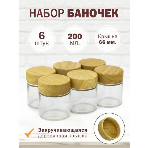 Стеклянная банка 200мл с деревянной крышкой 66мм
