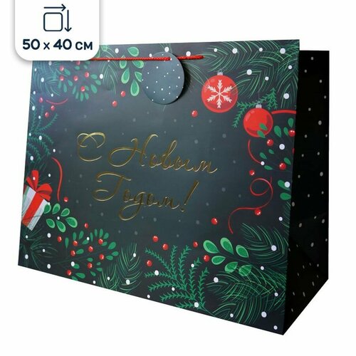 Пакет подарочный на Новый год, Классический стиль, 50х25х40 см