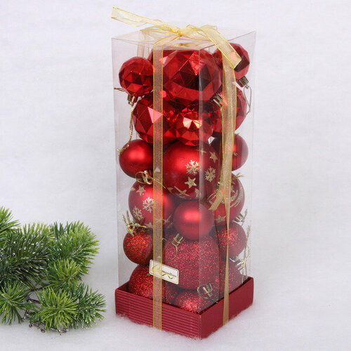 Набор шаров «Winter shine» 6 см + 4 см (24 предмета), Красный