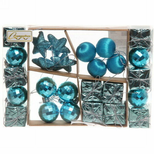 Набор ёлочное украшений "Морозный синий" 9 кристаллических мини игрушек