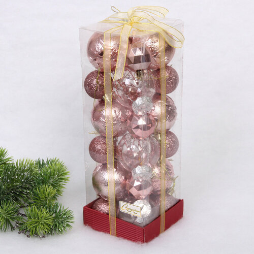 Набор шаров "Winter magic" 6 см + 4 см (24 предмета), Розовое золото