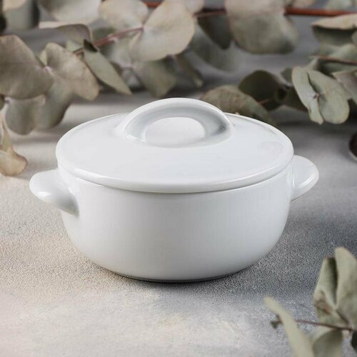 Блюдо фарфоровое БФ для запекания 400мл с 2-мя ручками с крышкой