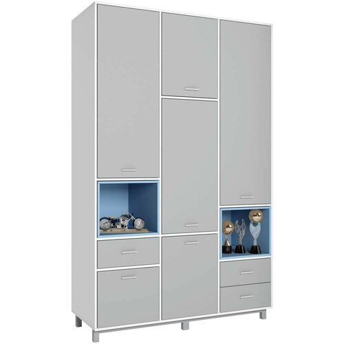 Шкаф трехсекционный Polini kids Mirum 2335, белый-серый/голубой