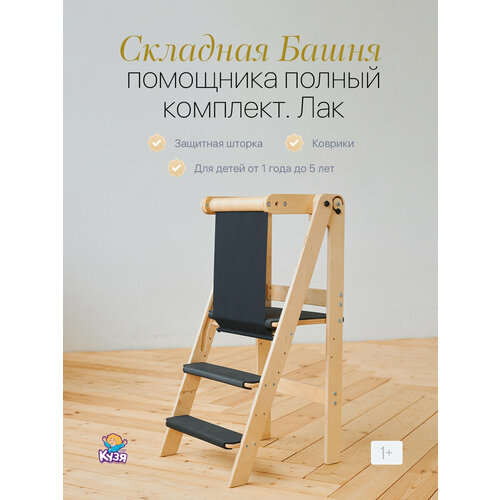 черный, серый, grayБашня помощника - это безопасная стремянка для малышей, которые научились уверенно стоять (примерно с 1 года). Она используется в методике Марии Монтессори для обучения самостоятельным действиям в быту и способствует включению ребёнка в дела семьи. Ребенок сможет наблюдать, как готовит мама, а позже помогать по мере взросления, самостоятельно мыть руки, посуду, чистить зубы, поливать цветы и совершать другие дела по дому Башня помощника имеет ограждение со всех четырех сторон и защитную шторку, чтобы пребывание ребенка на башне было полностью безопасным. А забираться и спускаться малыш сможет самостоятельно при помощью 2 удобных ступенек. В конструкции башни помощника от нашей мебельной фабрики "Друг Кузя" нет ничего лишнего, поэтому она наиболее надежная, устойчивая и безопасная. Возможность сложить башню помощника поможет сэкономить место в квартире. В сложенном виде башню проще переносить из комнаты в комнату, когда в ней нет необходимости - просто сложить. Башня складывается и раскладывается очень просто: