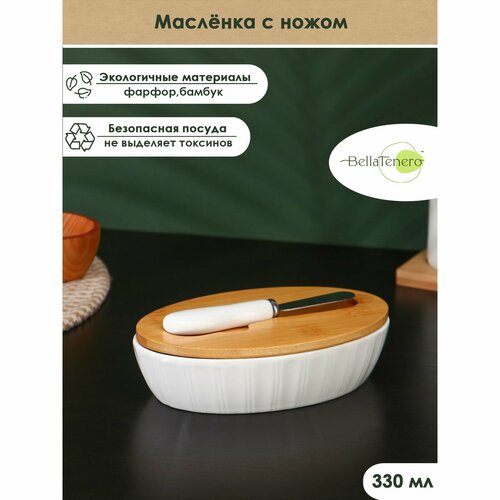 Маслёнка фарфоровая с ножом BellaTenero, 300 мл