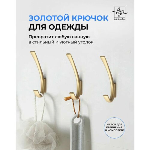 Крючок золотой матовый для одежды и полотенец, 3 шт / Настенная вешалка в ванную, прихожую и кухню