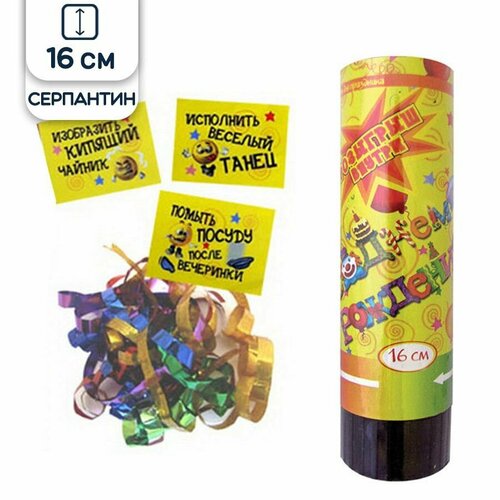 Хлопушка пружинная С Днем рождения, серпантин, с фантом, 16 см