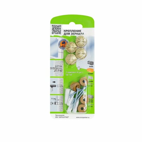 Крепление для зеркала 18 мм металл/пластик рифленое цвет золото 4 шт.