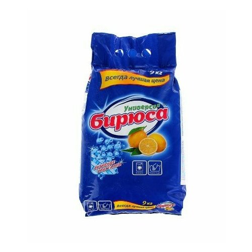 Стиральный порошок Бирюса Универсал, 9000 г, цитрусы, лимон, для синтетических тканей, для белых и светлых тканей