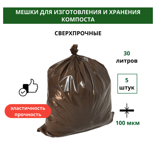 Мешки для приготовления биогрунта, бокаши и компоста 50х70 см 30 л 5 шт Благодатное земледелие