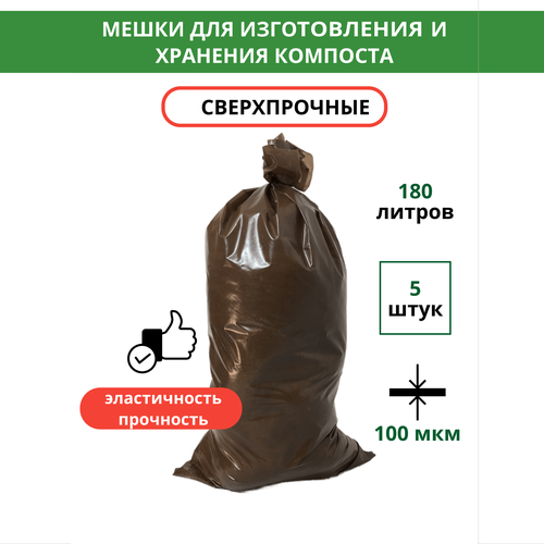 Мешки для приготовления биогрунта, бокаши и компоста 80х120 см 180 л 5 шт Благодатное земледелие