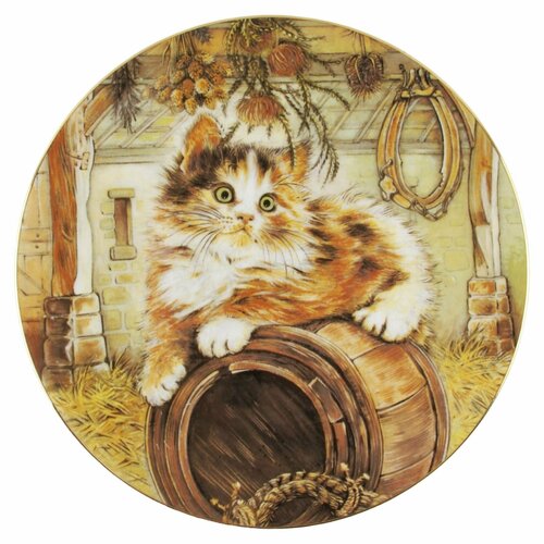 Винтаж. Коллекционная декоративная тарелка "Деревенский кот". Фарфор, деколь. The Hamilton Collection, Royal Worcester, Великобритания, 1985 год.