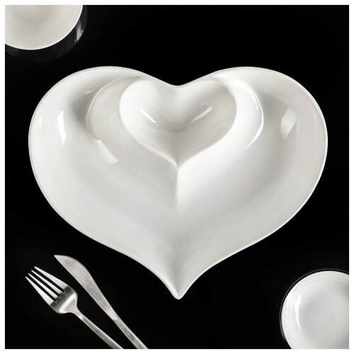 Блюдо керамическое с соусником «Сердце», 28×22×4 см