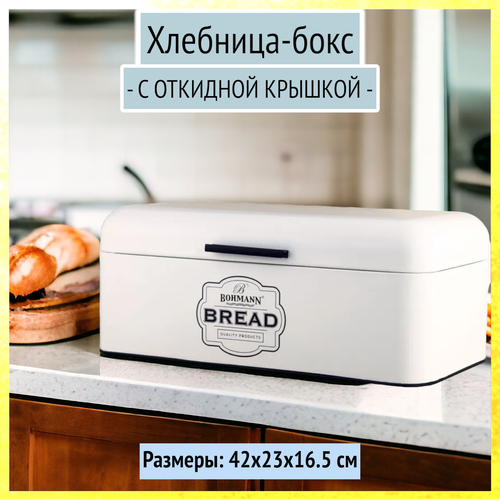 Хлебница металлическая с крышкой, 42х23х16.5 см, белая, Bohmann, BH-7261W