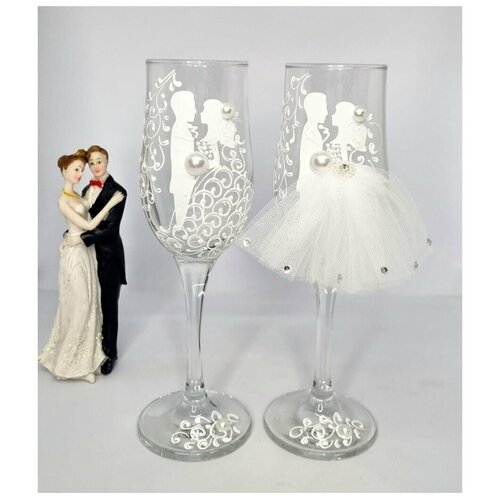 Бокалы свадебные "Молодожены" в белом цвете / фужеры для шампанского / набор 2 шт белый