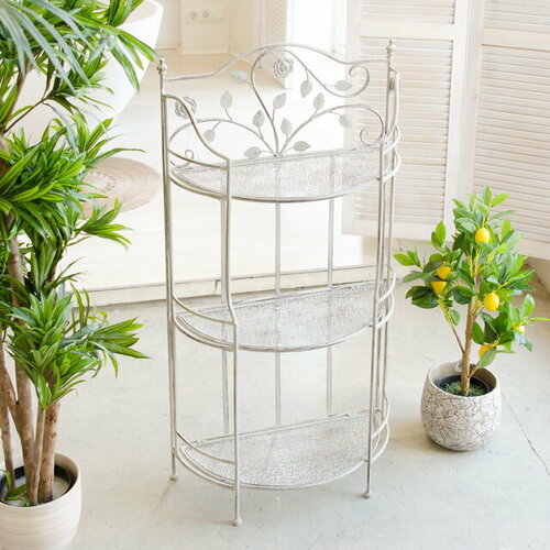 Кованая этажерка для цветов флорис, беелый антик, 60х28х116 см, Boltze