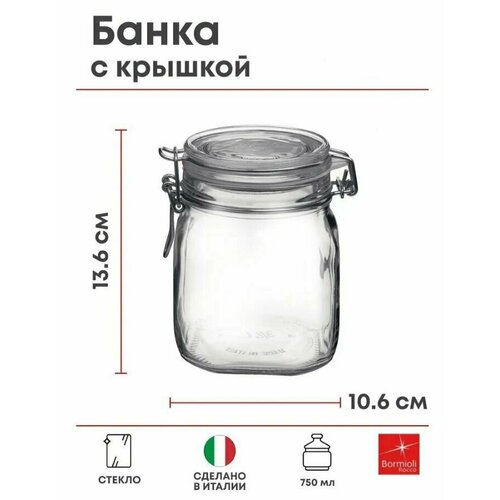 Банка квадратная с крышкой Bormioli Rocco Фидо 750мл, 106х10х136мм, стекло, прозрачный