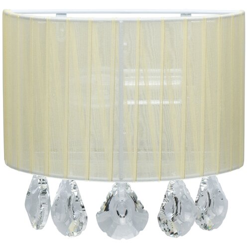 хромМеталлическое основание настенного бра гальванизировано в цвет хрома. Текстильный абажур белого цвета прошит. Бра декорировано прозрачным хрусталем.